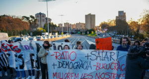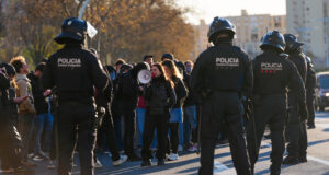 Docents en vaga tallen la C-31 a la frontera entre Badalona...