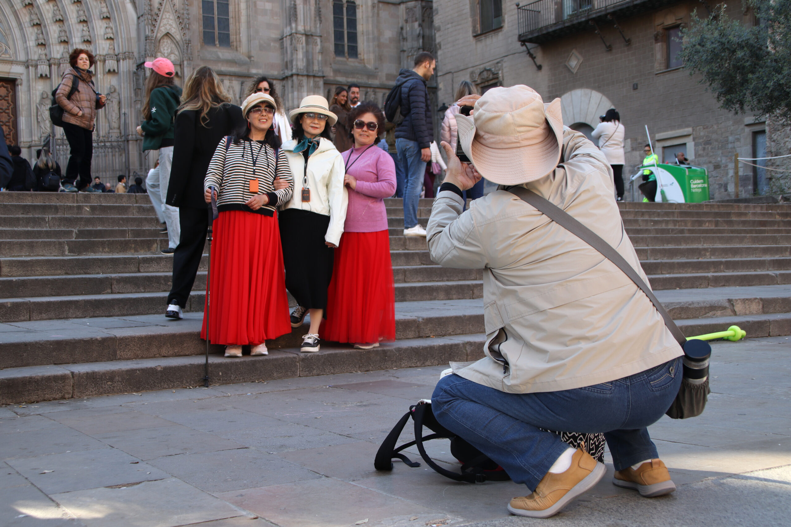 “Fa anys que sentim parlar de Barcelona i penso que té un encant natural”, afegeix des dels peus de la Catedral. A més a més, assenyala en positiu que els ha sorprès la quantitat d’arbres i de verd que hi ha en carrers i places. La Fan Yueng també ha vingut amb la família i també estan visitant el barri Gòtic. Ve de Suïssa i explica que és el primer cop que ella i els nens visiten la capital catalana, si bé el marit -amb qui també viatja- ja havia vingut altres cops per viatges de feina, però sense haver pogut visitar com cal el centre de Barcelona.