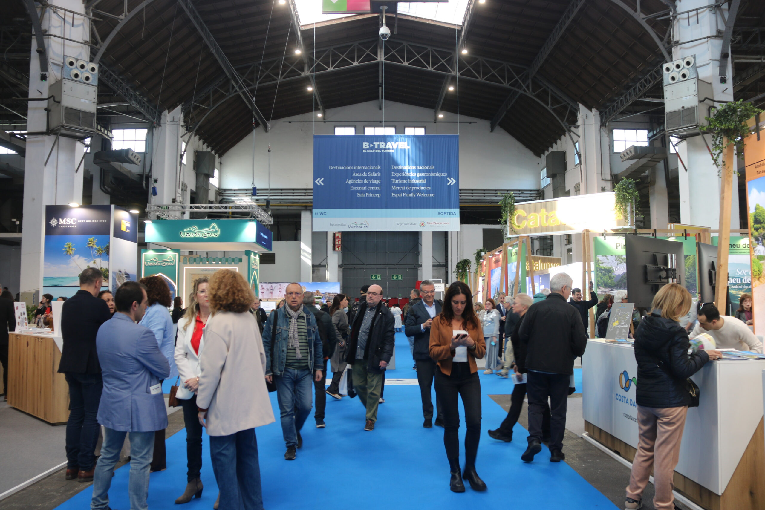 El B-Travel ha arrencat aquest divendres amb la previsió de superar els 26.000 assistents de l’any passat. “Estem molt contents perquè hi ha tots els expositors que havien confirmat”, ha celebrat Sarrate. Així, no hi ha hagut cap cancel·lació d’última hora pel context geopolític i, tal com estava previst, al pavelló 8 del recinte de Montjuic de Fira de Barcelona s’hi apleguen fins a 110 expositors de la majoria de comunitats autònomes i també destins internacionals, com l’Uzbekistan (país convidat), Portugal, Croàcia o regions d’Islàndia o França, entre molts altres.