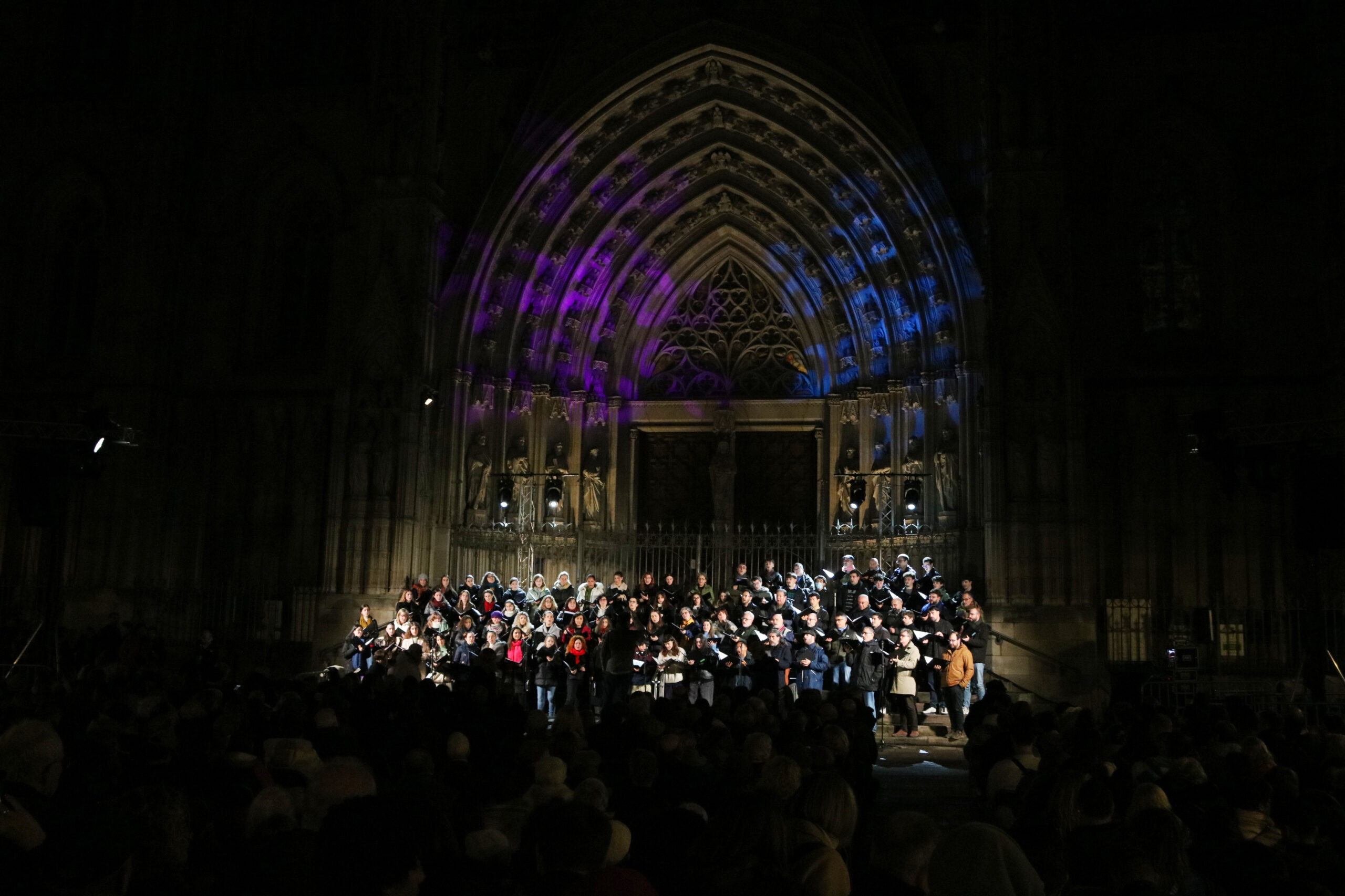 ACN Barcelona – El tradicional concert de nadales de l’Orfeó Català ha aplegat un miler de persones davant la Catedral de Barcelona, segons els organitzadors. Els cantaires de l’Orfeó Català, acompanyats d’alguns membres del Cor Jove i del Cor de Noies de l’Orfeó Català, han ofert al públic un repertori que combina cançons tradicionals nadalenques i d’altres interpretades al Concert de Sant Esteve. Enguany, el grup ha estat dirigit per Xavier Puig, que s’ha estrenat en aquest concert popular de nadales, i ha comptat amb Pau Casan al piano. L’actuació ha tingut lloc al Pla de la Seu, just davant de la catedral de Barcelona, per segon any consecutiu.