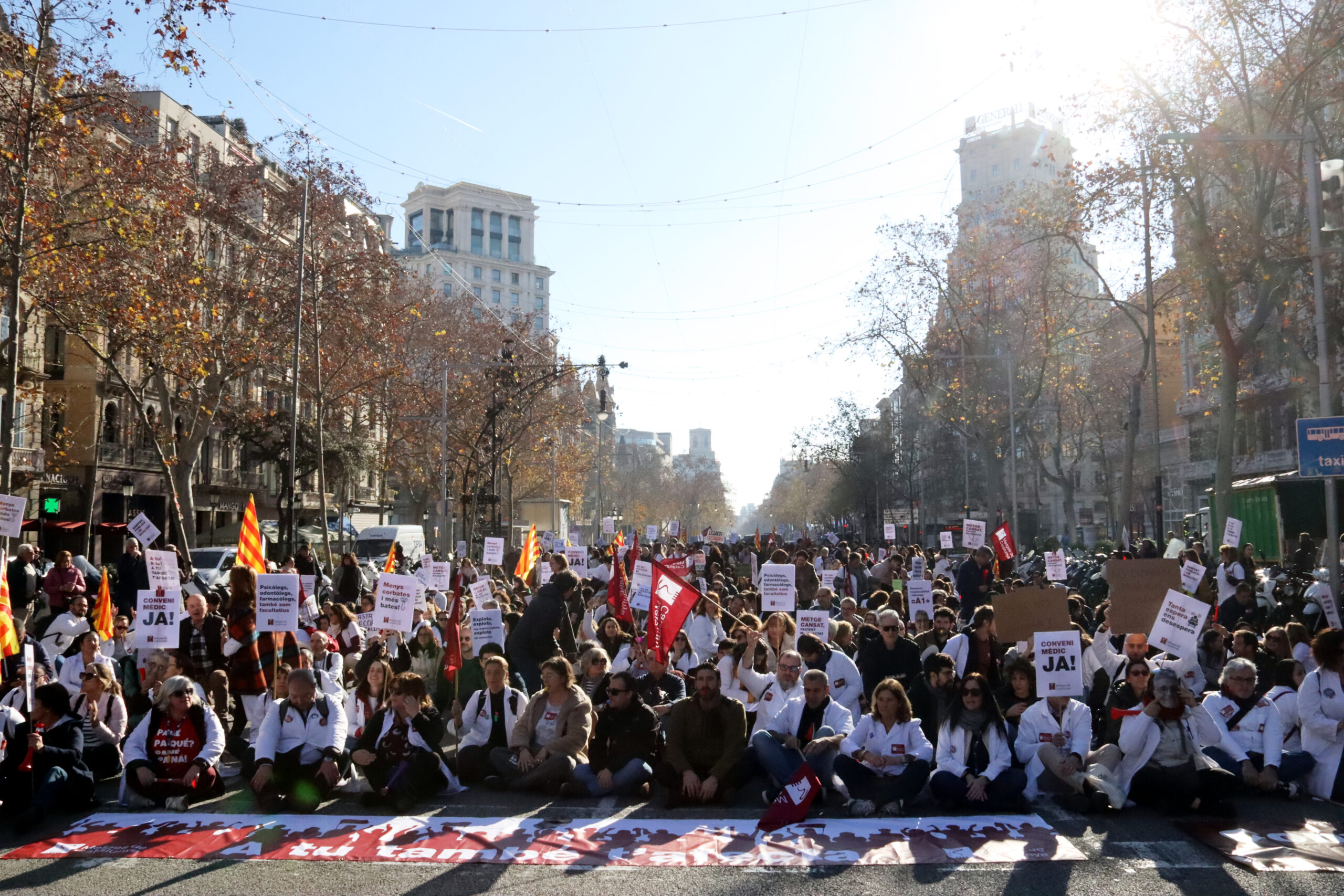 Els metges es manifesten a Barcelona per reclamar millores laborals i un conveni propi en la cinquena jornada de vaga