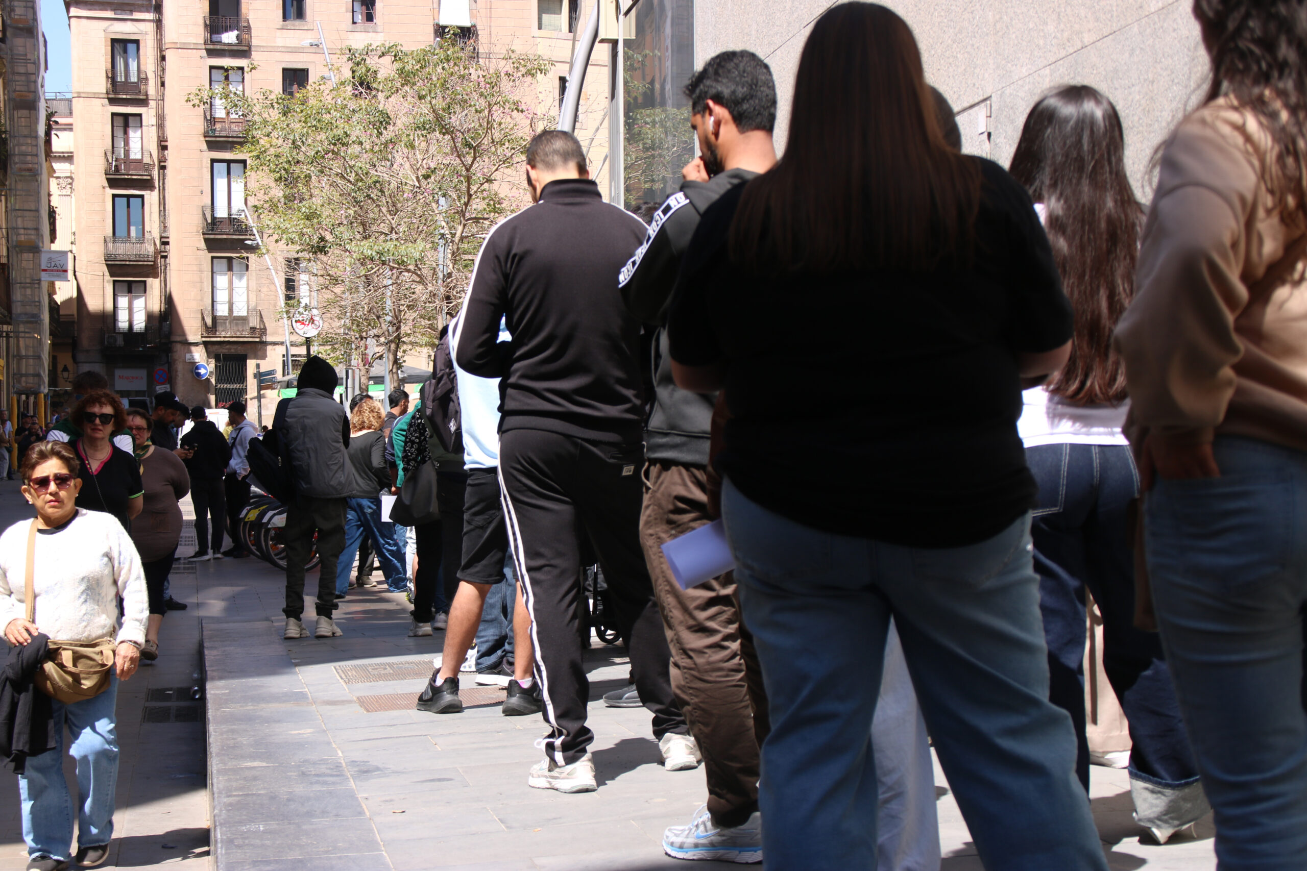 ACN Barcelona – El procés de regularització extraordinària per persones en situació administrativa irregular ha fet que molts migrants s’adrecin a alguna de les oficines d’atenció ciutadana (OAC) de l’Ajuntament de Barcelona. Són tantes les persones que necessiten aclarir dubtes o fer tràmits, que moltes s’hi ha apropat aquest dijous al matí, sense cita prèvia i disposats a fer hores de cua, fins a cinc hores en alguns casos. Entre els qui hi han anat aviat i encara fan cua, passades les 13 hores, hi ha la Keni i l’Irma, d’Hondures i de l’Argentina, respectivament. També fa cua en César, de Colòmbia. Alguna de la documentació que necessiten és l’informe de vulnerabilitat, l’actualització del padró, el certificat de convivència i el d’antecedents penals.