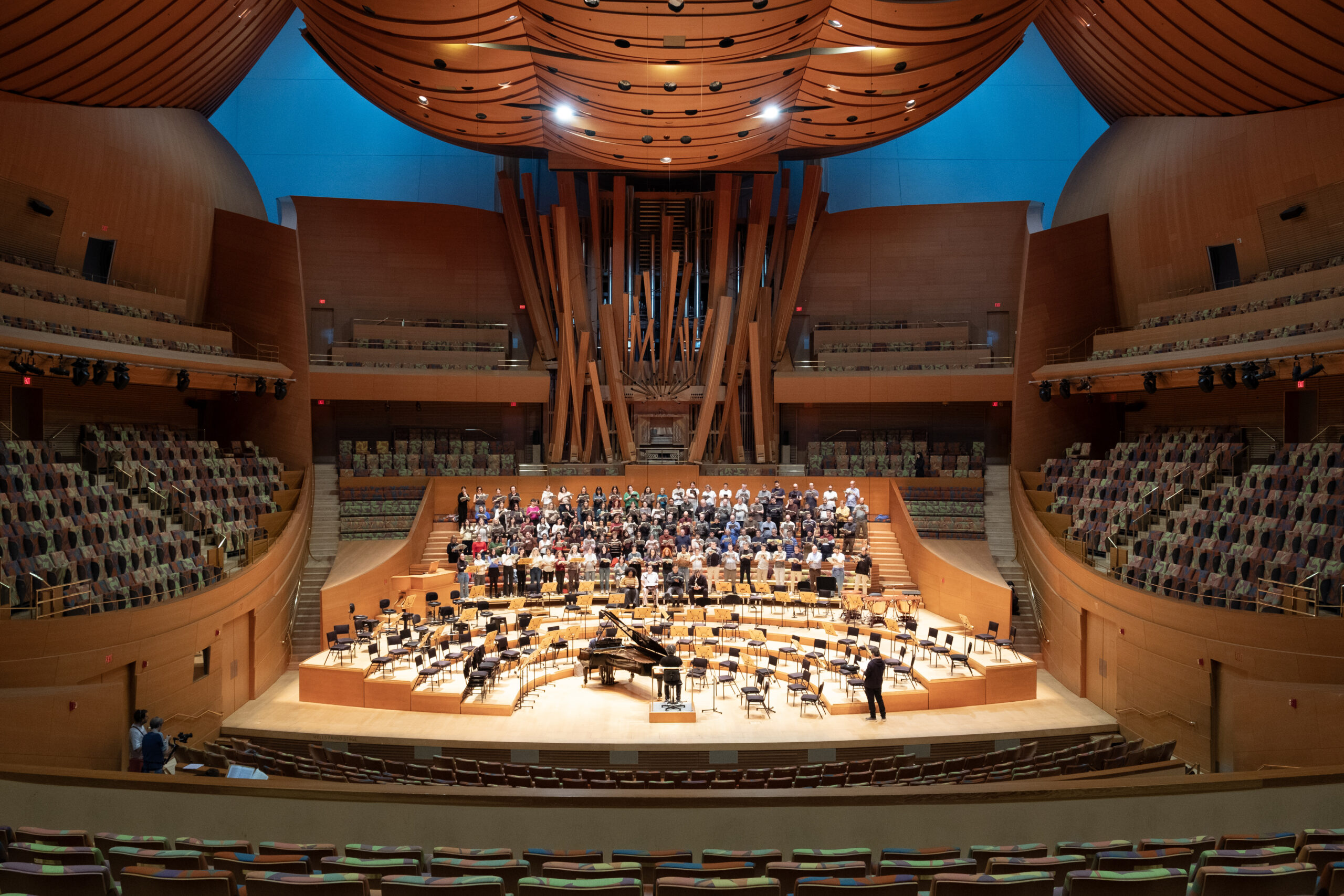ACN Los Angeles – L’Orfeó Català i el Cor de Cambra del Palau de la Música encaren el repte d’estrenar la ‘Missa solemnis’ de Beethoven a Los Angeles sota la batuta de Gustavo Dudamel. Els cors del Palau agermanaran les seves veus amb els músics de la Filharmònica de Los Angeles (LAPhil) i els solistes en tres concerts al Walt Disney Concert Hall, que també suposen una fita per al director veneçolà. Perquè aquest és el primer cop que Dudamel dirigeix la partitura, considerada una de les més exigents del repertori simfònico-coral. Per a l’Orfeó i el Cor han estat mesos de preparació, també amb concerts previs al novembre a Catalunya. Ara la foto de família davant l’auditori de Los Angeles i l’últim assaig general han marcat les hores abans de l’estrena.