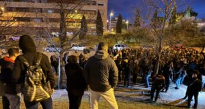 Tensió a la concentració de suport als immigrants desallotjats que continuen...