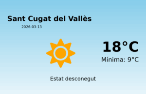 Predicció del Temps per Sant Cugat del Vallès - 13 de març de 2026 Avui, la ciutat de Sant Cugat del Vallès experimentarà unes condicions...