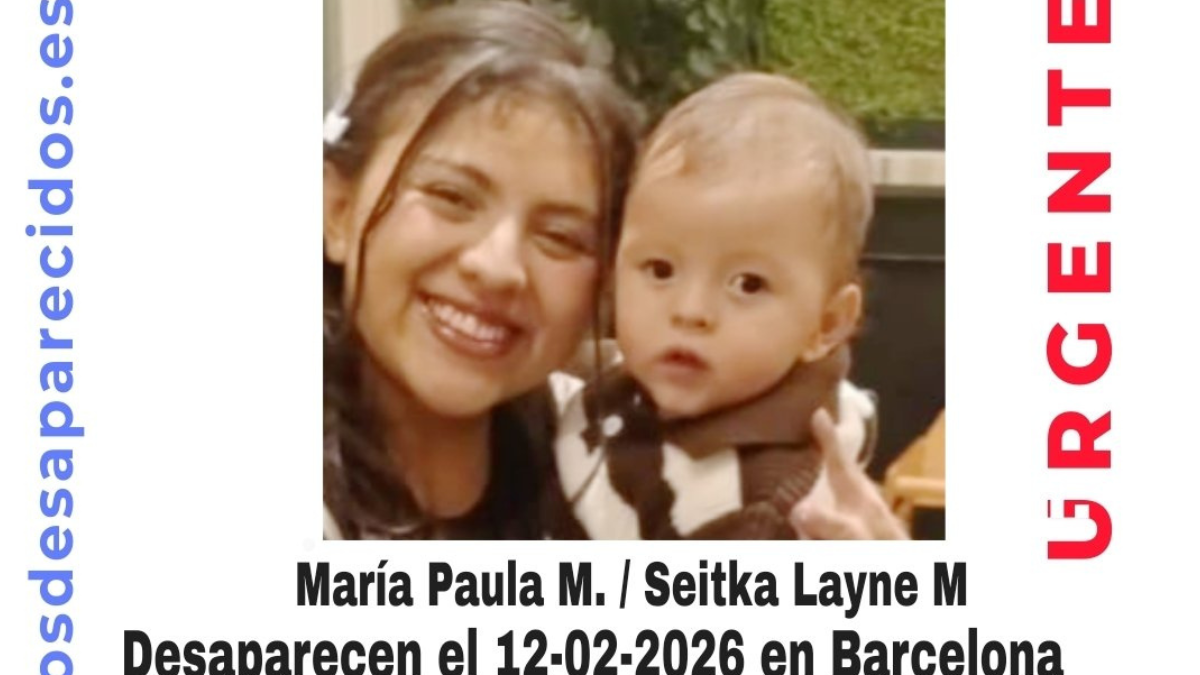 Els Mossos d’Esquadra i l’associació SOS Desaparecidos mantenen activa la recerca de María Paula M., de 23 anys, i del seu fill Seitka Layne M., de 23 mesos, desapareguts a Barcelona el passat 12 de febrer de 2026. Les autoritats han difós un avís oficial de desaparició amb el nivell d’alta vulnerabilitat per la presència d’un menor.